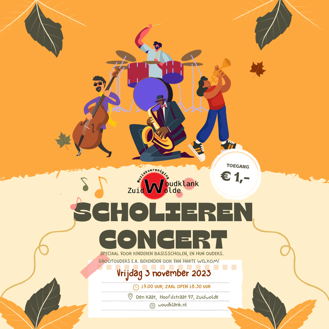 We geven vrijdagvond 3 november een exclusief concert voor scholieren van alle basisscholen in Zuidwolde, Alteveer en Kerkenveld. Het optreden begint om 19.00 uur in Den Kaat. De toegang bedraagt 1 euro. Ook (groot)ouders/verzorgers en andere belangstellenden zijn van harte welkom. Onze leden brengen graag hun plezier in het samen musiceren over aan de jonge […]