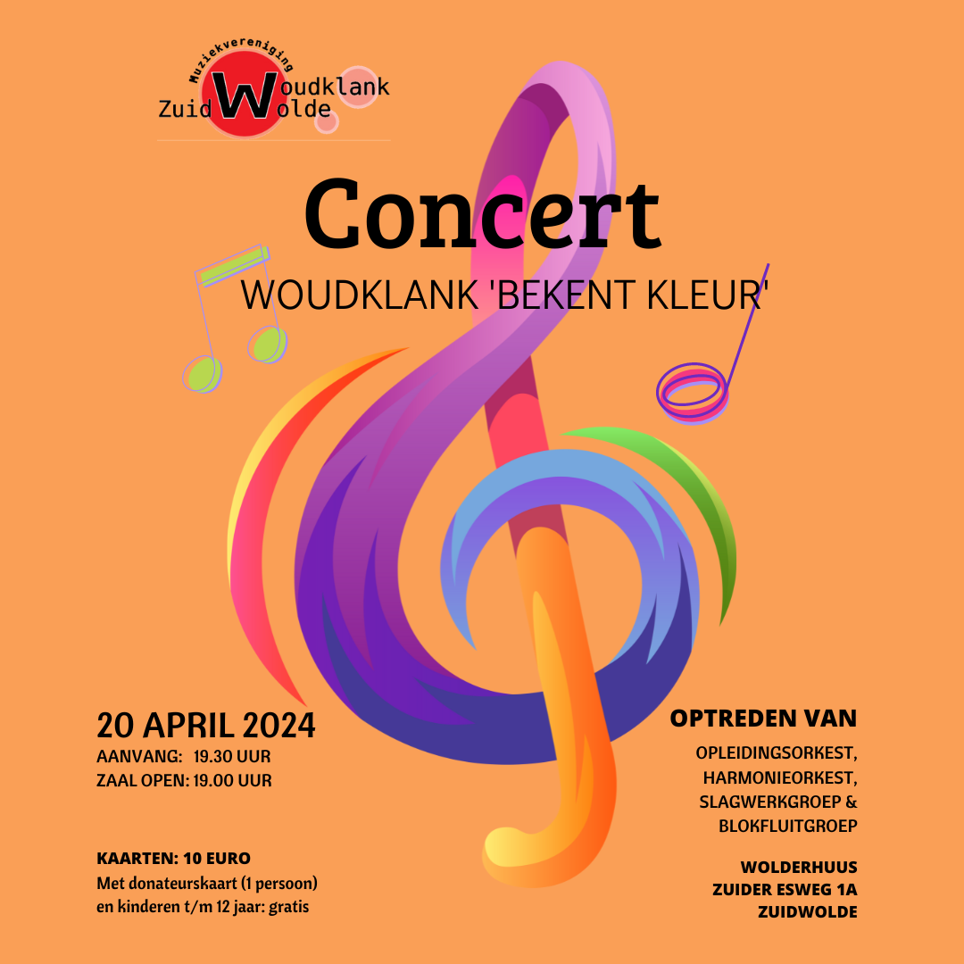Op zaterdagavond 20 april geven we ons jaarlijkse concert voor de donateurs en andere muziekliefhebbers. Dit keer in het nieuwe Wolderhuus. Het thema is ‘kleuren’, wat garant staat voor een gevarieerd repertoire in allerlei muziekstijlen, van musical tot mars, van pop tot klassiek. Wie treden er op? Het opleidingsorkest met dirigent Ilona Slomp, de slagwerkgroep […]